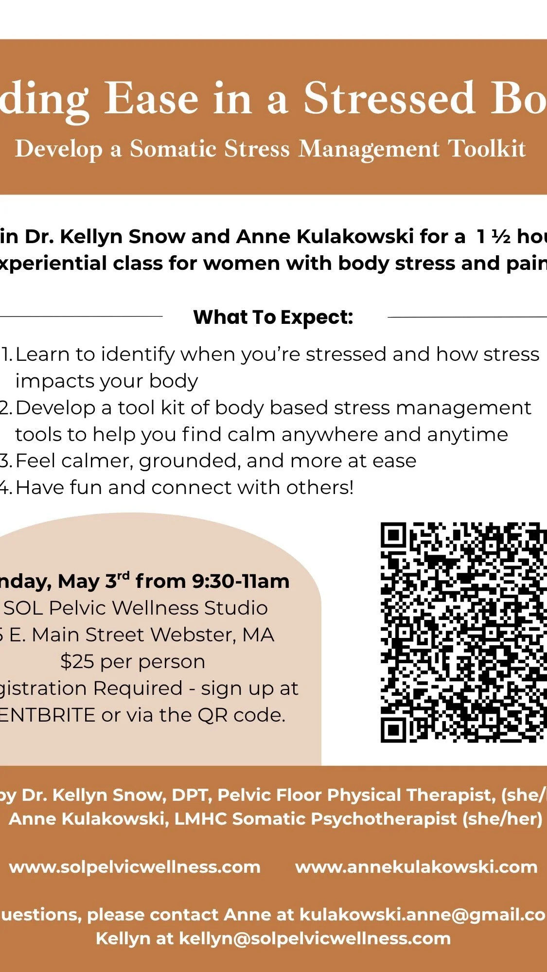 SóL is more than just a physical therapy clinic; it's a wellness studio dedicated to supporting the women of Massachusetts, Connecticut and Rhode Island. I offer personalized physical therapy alongside educational workshops and fitness classes. The studio is designed to be a private, comfortable and welcoming space, specialized to treat the pelvic floor.